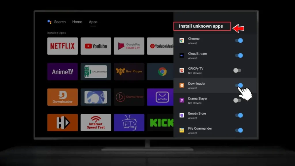 3. Find and toggle ON for Downloader (or your browser/file manager).